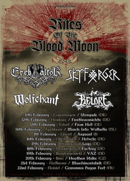 - Die Epic Viking Metaller EREB ALTOR gehen anfang des Jahres wieder mit SKYFORGER zusammen bei uns auf Tour. Unter dem Titel “Rites of the Blood Moon“ ziehen die beiden Bands plus WOLFCHANT und BELORE durch mitteleuropäische Clubs, wobei Deutschland mit… –weiterlesen–