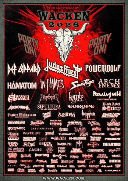 - Die WOA Festivalmacher geben heute die nächste Bandwelle für 2026 bekannt, in der gleich 55 Acts schwimmen. Als weiterer Haedliner sind JUDAS PRIEST angekündigt, sowie folgende neue Bands. Ad Infinitum, Alestorm, Alfahanne, Angelus Apatrida, Arch Enemy, Bleed from Within, Brunhilde,… –weiterlesen–