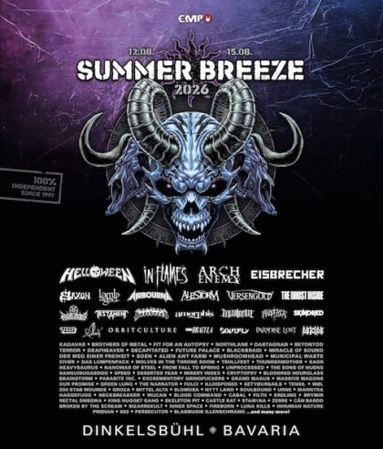 - Das Dinkelsbühler Summer Breeze Festival hat sein Line-Up für 2026 komplett. So sind wieder 33 neue Acts, von traditionell bis modern, von Grind bis Folk im Billing gelandet. rutscht. Insgesamt wartet das Summer Breeze 2026 mit 130 Bands Acts auf:… –weiterlesen–