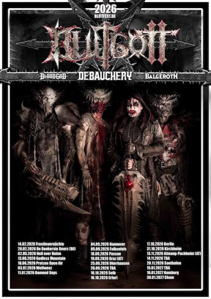 - Thomas Gurrath kündigt soeben für den Oktober 2026 seine nächstes BLUTGOTT Album an, von dem er zuvor monatlich eine Single veröffentlichen will. Außerdem gibt er die bisher geplanten Termine seiner “Blutfest“ getauften Tour für 2026 und auch schon 2027 bekannt…. –weiterlesen–