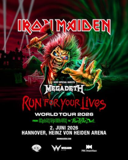 - 2. Juni 2026IRON MAIDEN kĂĽndigen soeben Tourtermine in Europa fĂĽr das Ende des ersten Halbjahres 2025 an. Die „Run For Your Lives“ World Tour erinnert an die BandgrĂĽndung durch Steve Harris Ende des Jahres 1975 und feiert das 50. bzw. 51. Bandjubiläum mit einer speziellen Setliste, welche die neun Studioalben vom DebĂĽt „Iron Maiden“ (1980) bis zu „Fear Of The Dark“ (1992)… –weiterlesen–