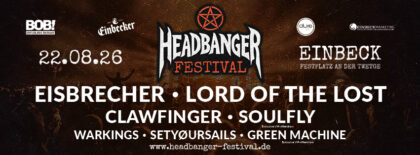 - 22. August 2026Festplatz an der Twetge EinbeckKlotzen, nicht kleckern, heißt wohl das Motto des neuen Headbanger Festivals das mit großen Namen aufwartet. So sind neben EISBRECHER und LORD OF THE LOST auch CLAWFINGER, SOULFLY, WARKINGS, SET YOUR SAILS und GREEN MACHINE für die erste Ausgabe keine kleinen Nummern. Hinter der Veranstaltung steht zum einen wohl eine bekannte Brauerei aus dem niedersächsischen Einbeck und zum anderen noch… –weiterlesen–