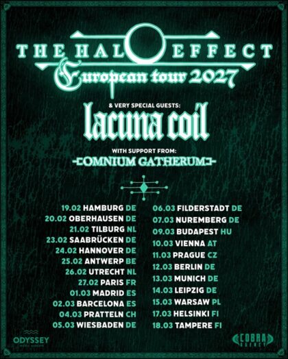 - 19. Februar – 14. März 2027Die schwedischen Melodic Death Metal THE HALO EFFECT erfreuen sich wachsender Beliebtheit und sind dem Status als In Flames Filiale längst entwachsen. Das zeigt auch die heutigen Ankündigung der zweiten European Headliner Tour der Band um Fronter Mikael Stanne im Frühjahr 2027, zu der sie zudem hochkarätige Begleiter willkommen heißen. Als Very Special Guest sind die italienischen Dark/Goth Metaller LACUNA… –weiterlesen–
