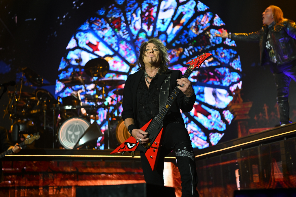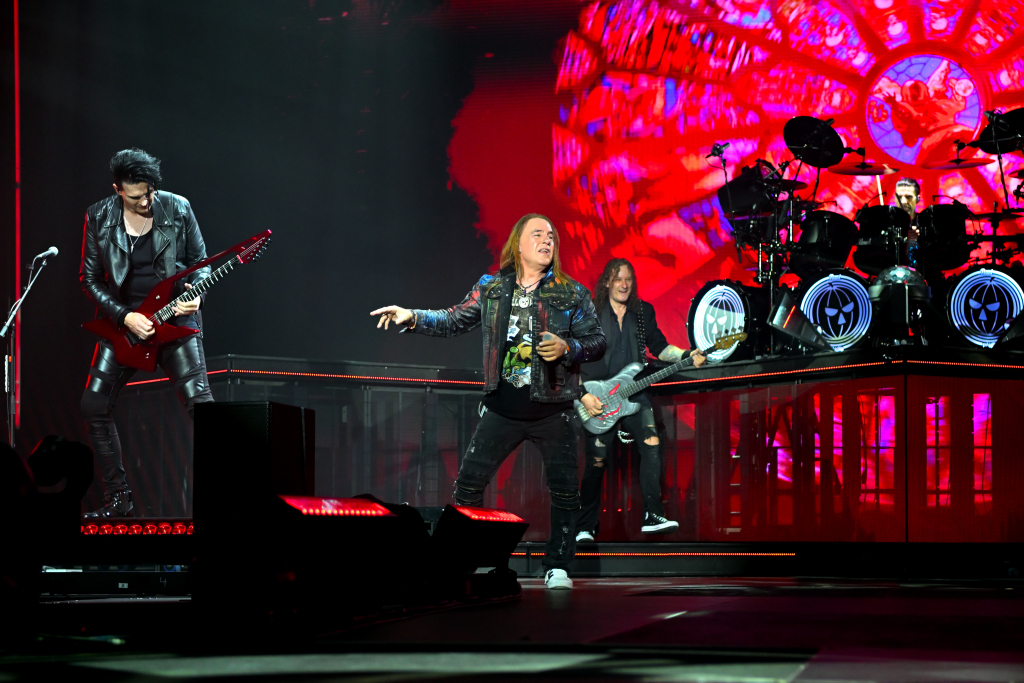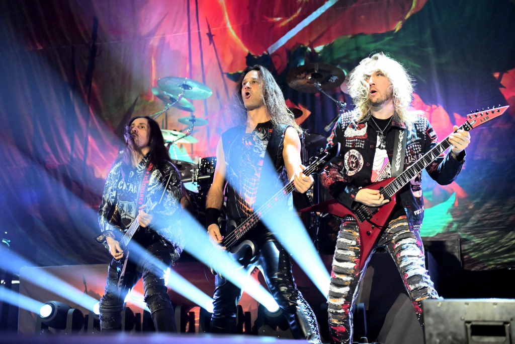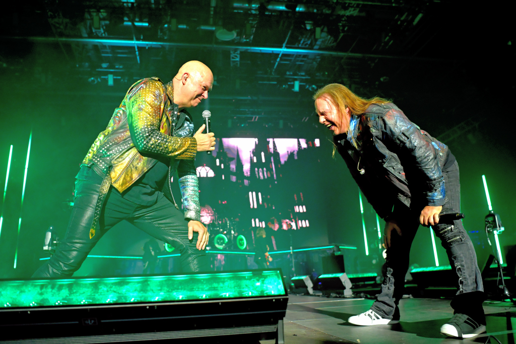 Die Altmeister Kai Hansen, Michael Weikath und Markus Großkopf zaubern verstärkt durch die beiden Jungspunde Sascha Gerstner (Gitarre) und Dani Loeble (Schlagzeug) eine beeindruckende Performance voller Spielfreude und Energie aufs Parkett, wozu Klassiker wie `Twilight of the Gods´ und das von Hansen intonierte `Ride the Sky´ ihren nicht unwesentlichen Teil beitragen. Das Gesangsdoppel Michael Kiske und Andy Deris sorgt mit launigen Dialogen und wechselnden Vocals für Stimmung. Beim packenden `We Burn´ gehen fette Pyros hoch und Deris darf mit einem Flammenwerfer hantieren.