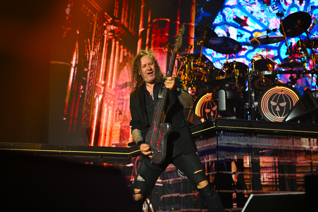 Auch technisch und visuell fährt die Power Metal Legende groß auf. Eine riesige Leinwand sowie seitliche Monitore und auch das Drumpodest werden mit passenden Einspielern und Videos und Live-Bildern der Musiker bespielt, die entweder manchmal auch bearbeitet oder in die vorbereiteten Visuals eingefügt werden. Beim auf das obligatorische Drum Solo folgenden Klassiker `I Want Out´ wird man von den quietschbunten Effekten beinahe ein wenig erschlagen. Ein Steg vor der Bühne ins Publikum sorgt für zusätzliche Fannähe und noch mehr Bewegungsfreiheit. Dort steigt auch der kurze Akustikpart aus `In the Middle of a Heartbeat´ und