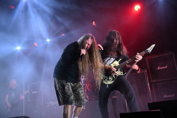 Wenn man mal so durch das Publikum streifte, entdeckte man anhand der Shirts und Patches, wer an diesem Abend der Favourite ist. OBITUARY genießen derzeit so etwas, wie ihren zweiten Frühling. Unfassbar wie tight und groovy dieses Death Metal Monster ist. Die Menge hatte Bock auf OBITUARY, das merkte man zu jeder Sekunde. Nach dem Intro ging es auch sofort los mit dem instrumentalen Stampfer `Redneck Stomp` vom FROZEN IN TIME Album. Die Band passenderweise eingehüllt im sumpfigen Nebel. Der Sound ist auch hier klasse, die Halle brodelt. Da ihr Album CAUSE OF DEATH 35. Jubiläum feiert , werden auch gleich fünf Tracks davon serviert. `Infected`, `Body Bag`, `Dying`, `Chopped in Half`, sowie das Titelstück `Cause of Death`. Mit `Turned inside Out` darf ein weiterer Smash Hit der Florida Boys nicht fehlen. Das obligatorische `Slowly we Rot` bildet wieder mal das Schlusslicht. Als witzigen Show-Act lässt Sänger John Tardy dazu noch einen aufblasbaren Alligator von der Leine und eine Old School Florida Death Metal Lehrstunde geht zu Ende.