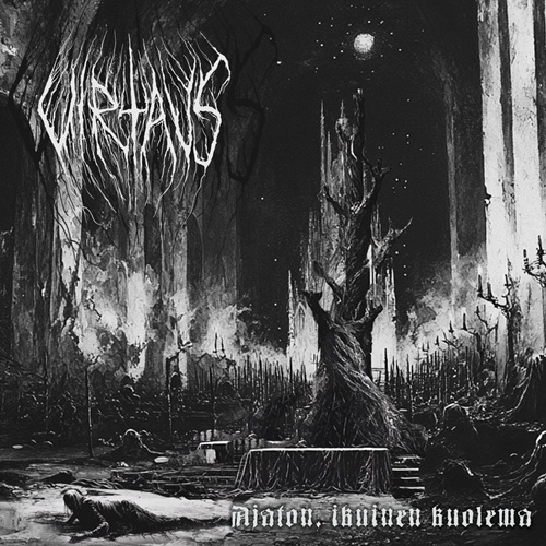 Mit “Ajaton, ikuinen kuolema” veröffentlichen VIRTAUS aus Mäntsälä ihr zweites Full-Length-Album. Das digitale Release erschien am 03. Mai 2025, die physische Veröffentlichung folgte am 23. Januar 2026. Die neun Tracks bewegen sich im nordischen Black Metal und setzen auf eine kalte, rohe und aggressive Atmosphäre. Inhaltlich geht es um Tod, Leere, Misanthropie und das Ende der Menschheit – “zeitloser, ewiger Tod” ist dabei weniger ein Titel als vielmehr die Grundhaltung. Aufgenommen wurde das Album von VIRTAUS selbst, Mixing und Mastering übernahm H. Hyytiäinen. Das Cover-Artwork stammt von T. Honkanen, das Bandfoto von T. Salminen und wurde ebenfalls von Honkanen bearbeitet.