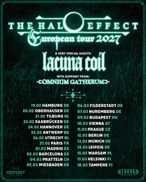 Die schwedischen Melodic Death Metal THE HALO EFFECT erfreuen sich wachsender Beliebtheit und sind dem Status als In Flames Filiale längst entwachsen. Das zeigt auch die heutigen Ankündigung der zweiten European Headliner Tour der Band um Fronter Mikael Stanne im Frühjahr 2027, zu der sie zudem hochkarätige Begleiter willkommen heißen. Als Very Special Guest sind die italienischen Dark/Goth Metaller LACUNA COIL mit an Bord, den Support Slot besetzen die finnischen Genrekollegen OMNIUM GATHERUM. Der Ticket-Vorverkauf beginnt am Freitag um 10:00 Uhr CET.